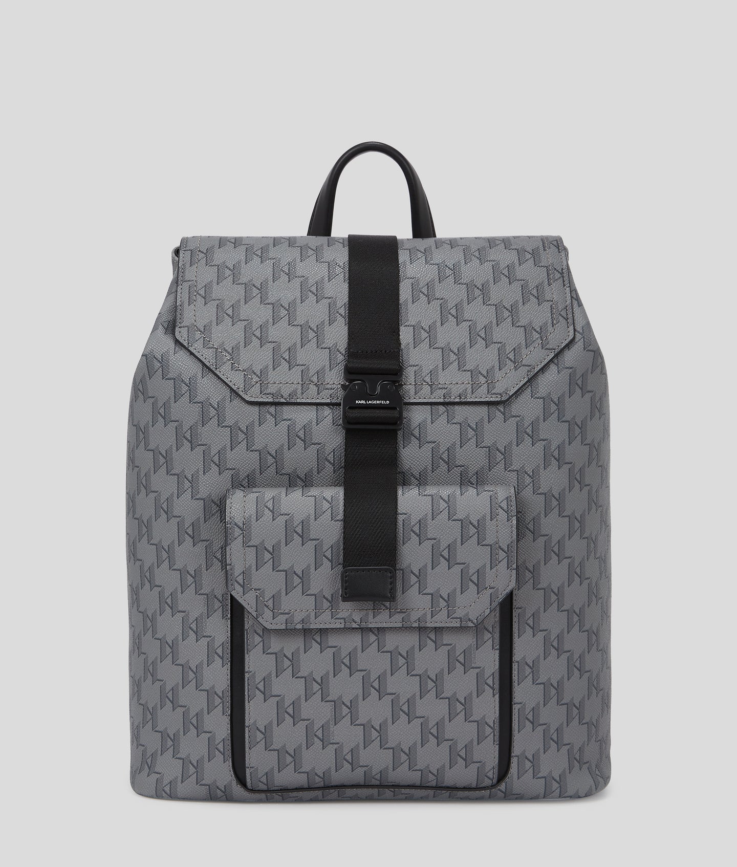Elevate your daily commute or vacation adventures with this eye-catching backpack showcasing a sophisticated all-over KARL Monogram design. With a secure buckled flap and a convenient front pocket, it effortlessly combines functionality with a modern aesthetic.