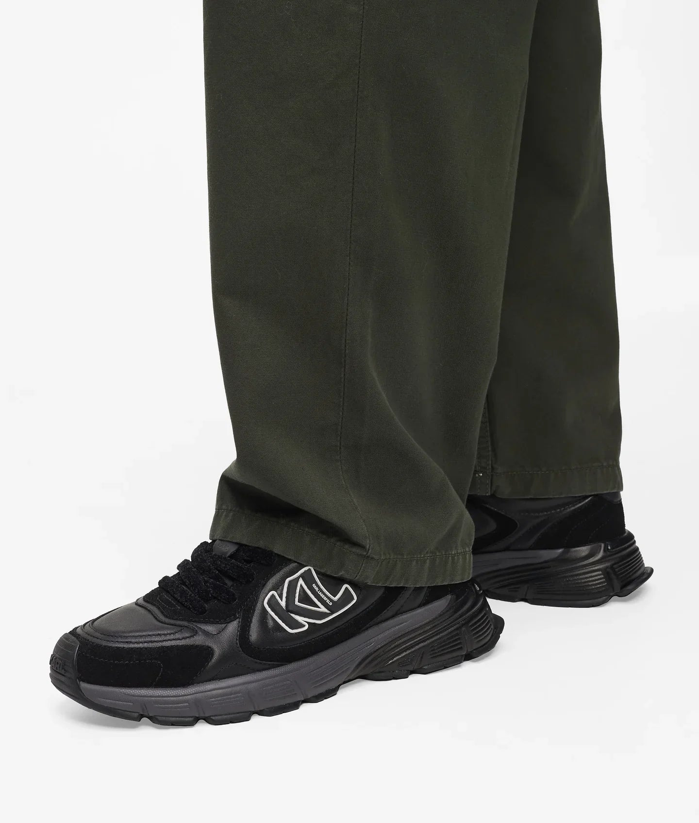 Sporty and sleek, these sneakers feature leather and suede panelling and a bold KL-logo for a standout look. The raised outsole grip ensures stability while the lace-up design offers comfort, perfect for effortless all-day wear.
