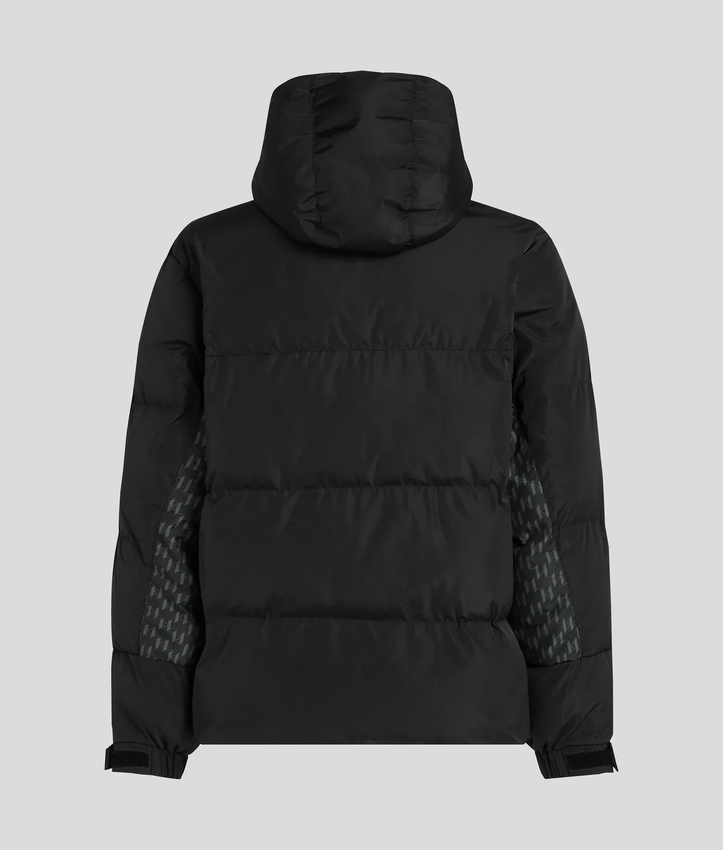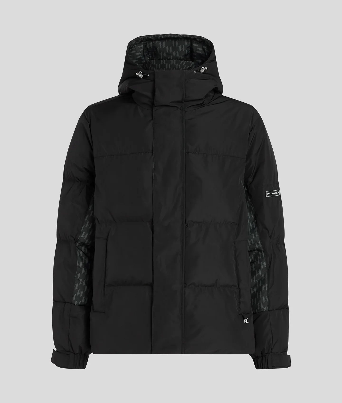 Unleash a bold statement with this puffer jacket, featuring a sleek concealed front closure and adjustable drawcords adorned with branded stoppers. The inner arms and hood are reinforced with Karl Monogram paneling for added durability in high-movement areas, while a logo patch at the arms completes this outerwear highlight.