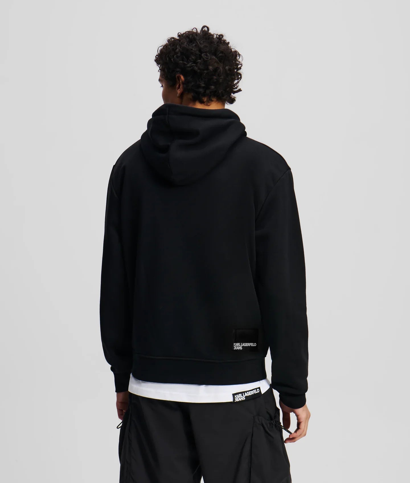 An athleisure favorite, this hoodie delivers on comfort and style. Featuring a drawstring hood, ribbed cuffs and hem for an enhanced fit, and a practical kangaroo pocket. A statement KARL LAGERFELD JEANS logo across the chest adds a bold touch.