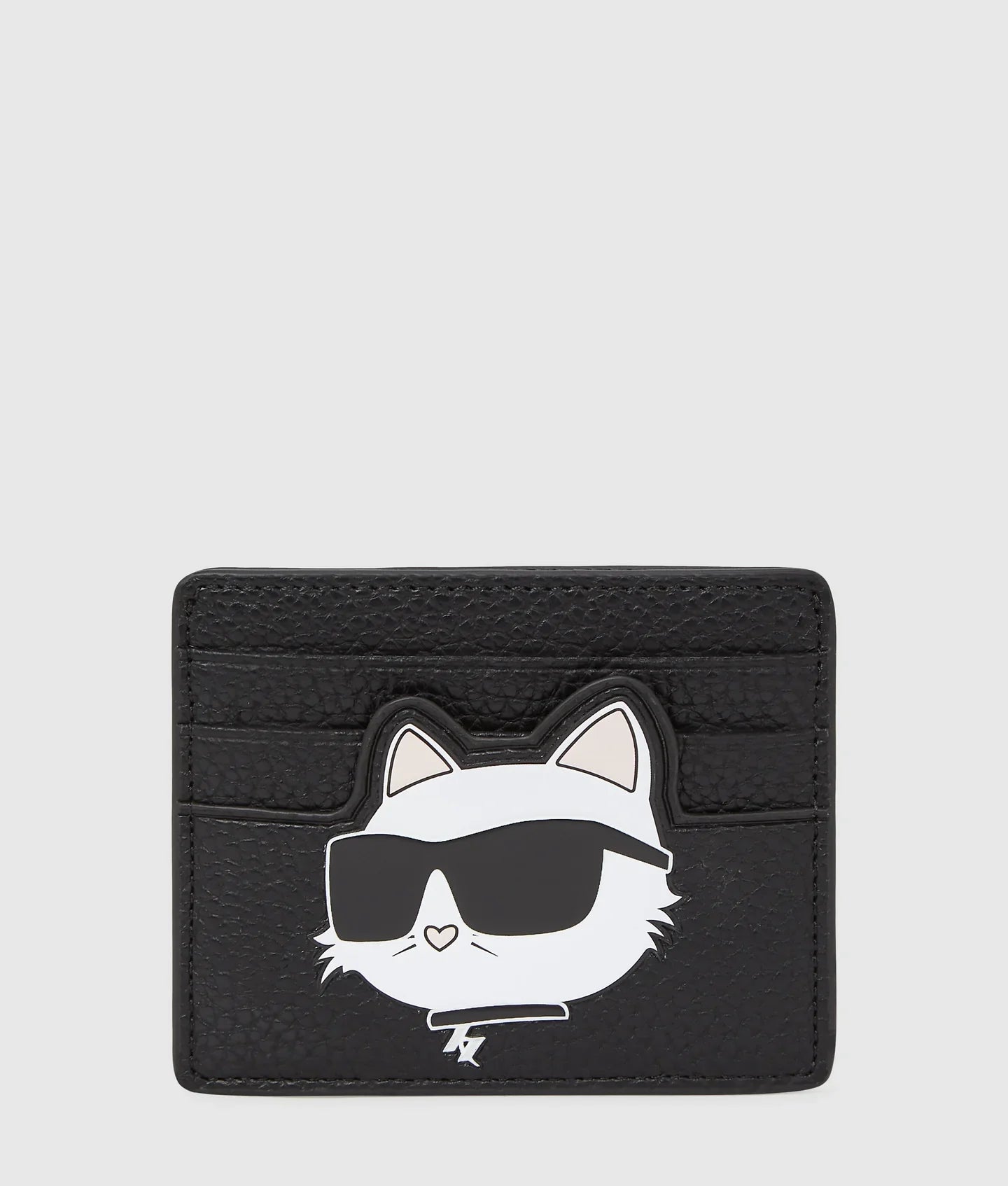 This cardholder features a textured finish and a slim profile. Six card slots and playful Choupette artwork complete the essential piece.