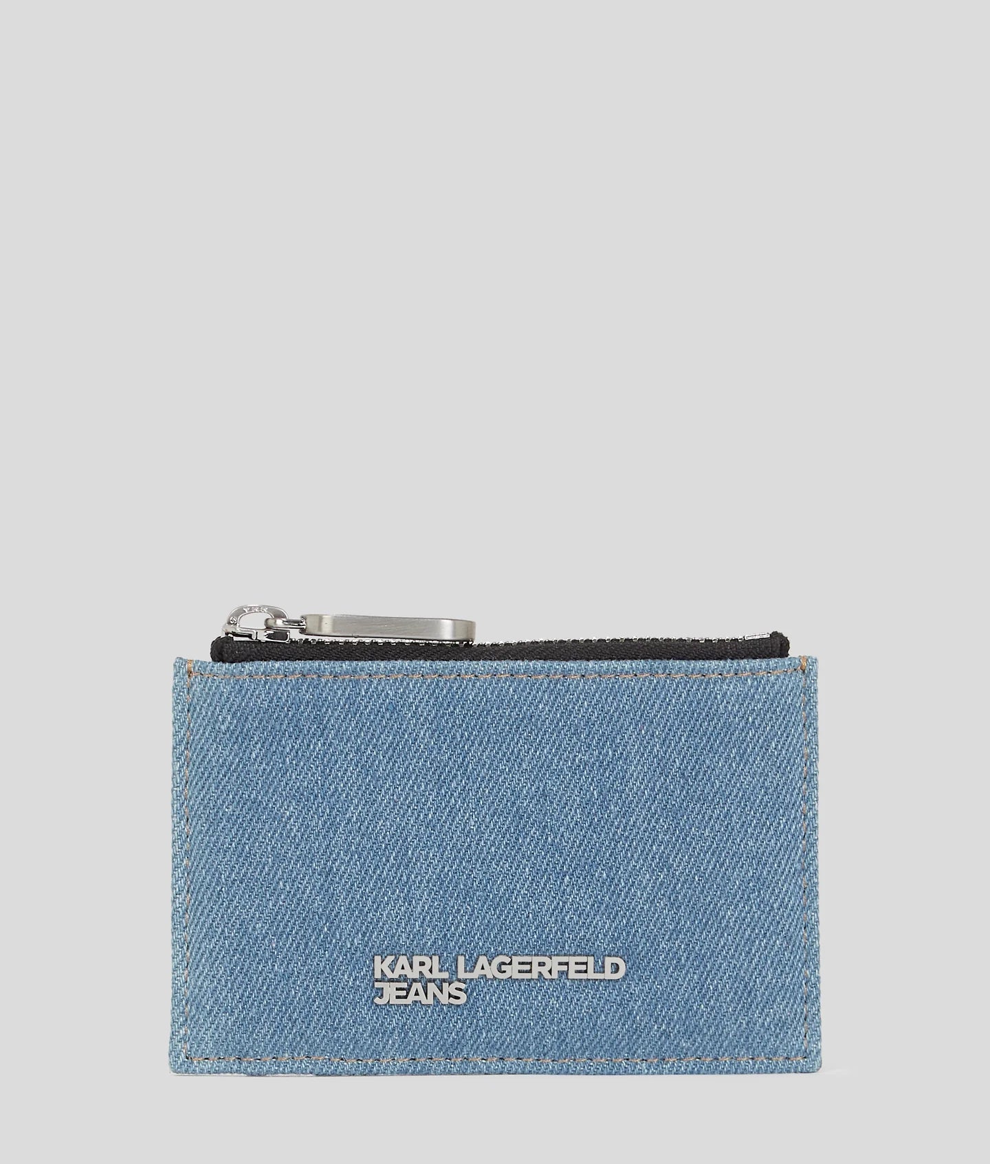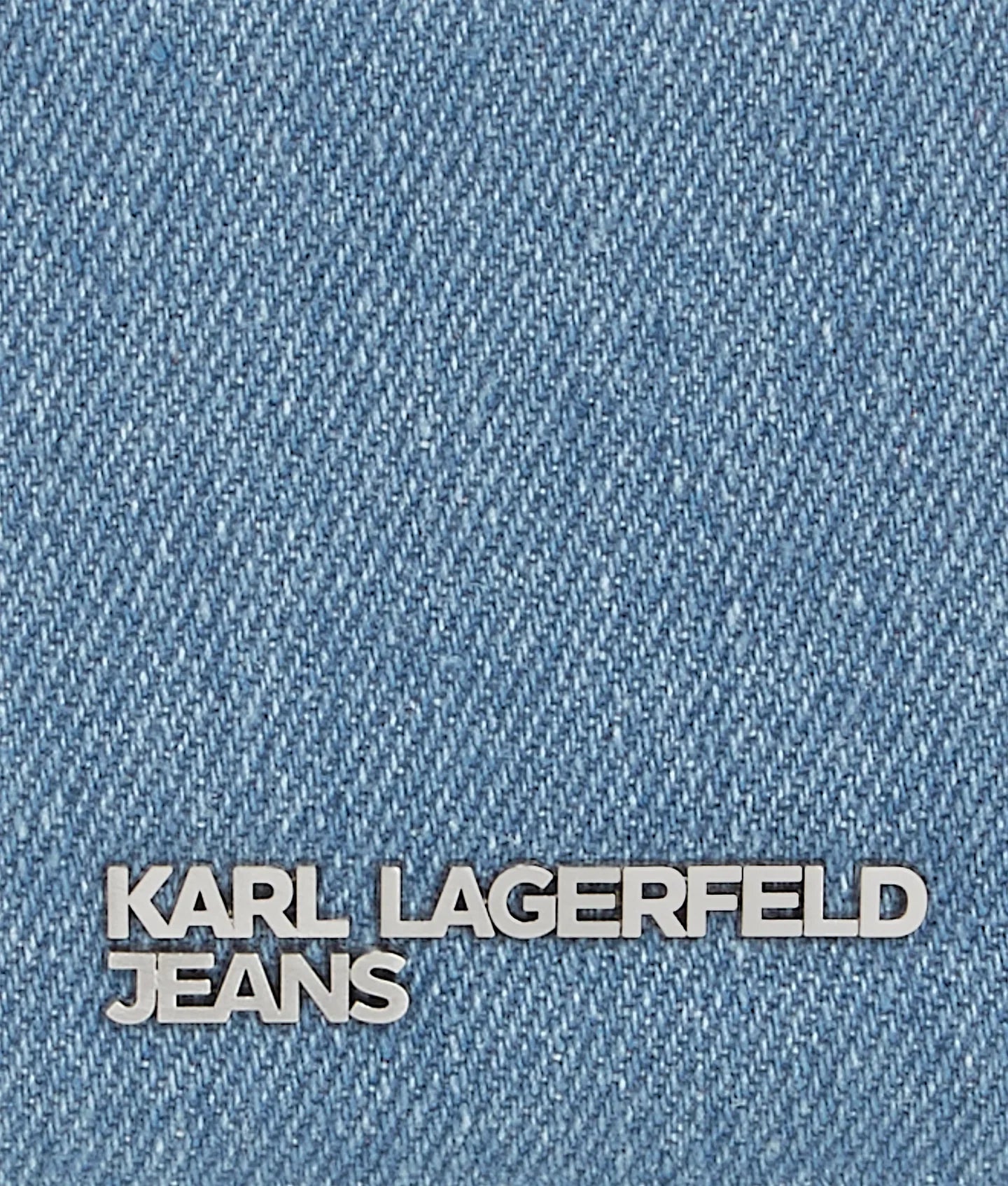 A pocket-friendly denim cardholder blending style and functionality. Featuring a zipped compartment and two card slots, it keeps essentials organized, while the chain detail allows easy attachment to your favorite KARL LAGERFELD JEANS bag.