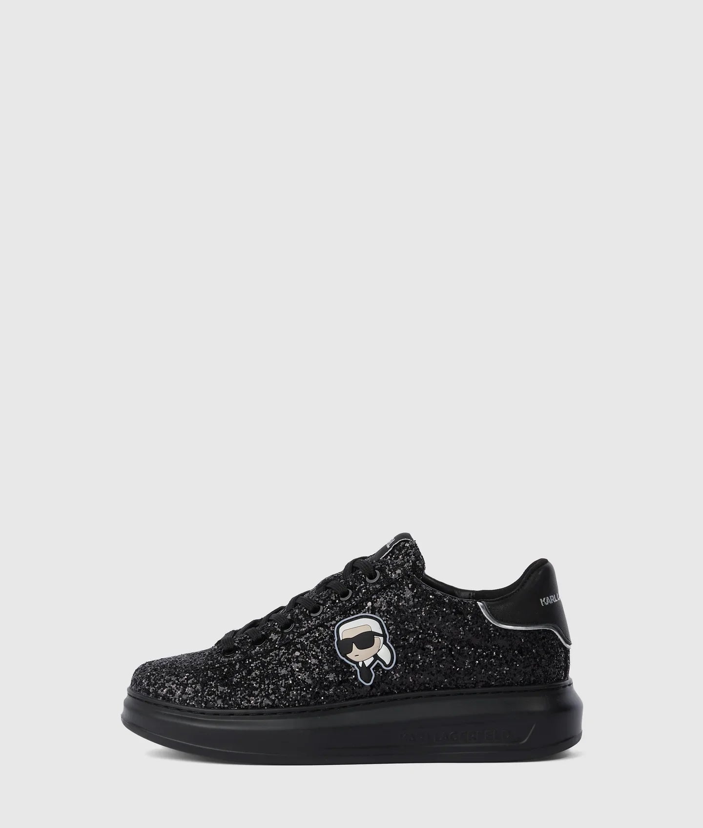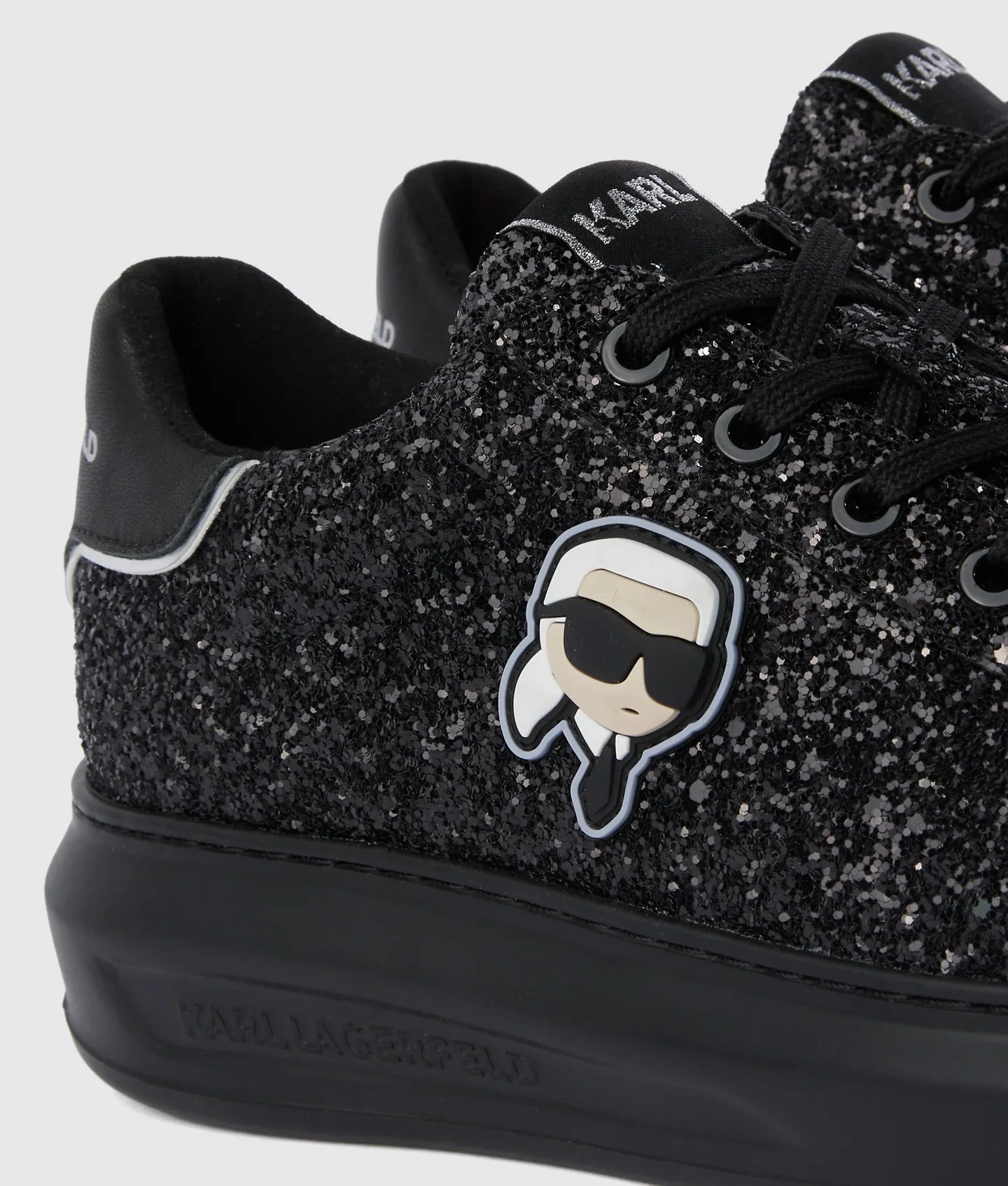 The Karl NFT logo artwork returns to a glitter textile upper that turns a minimalist sneaker into a statement piece at your feet.