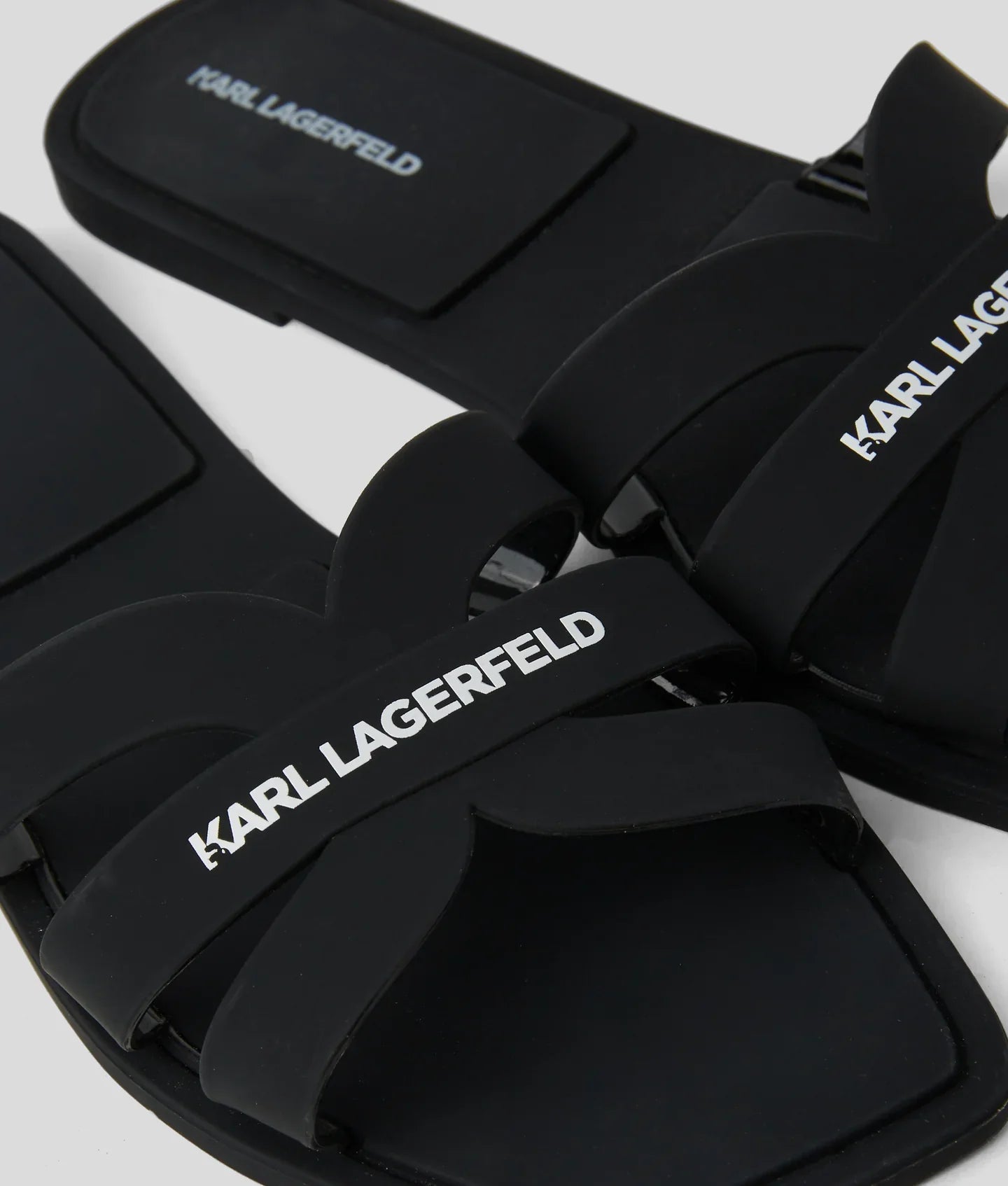 These jelly slippers feature a chic wide strap design adorned with playful cut-out details. The KARL LAGERFELD logo graces the footbed for a laidback yet iconic look.